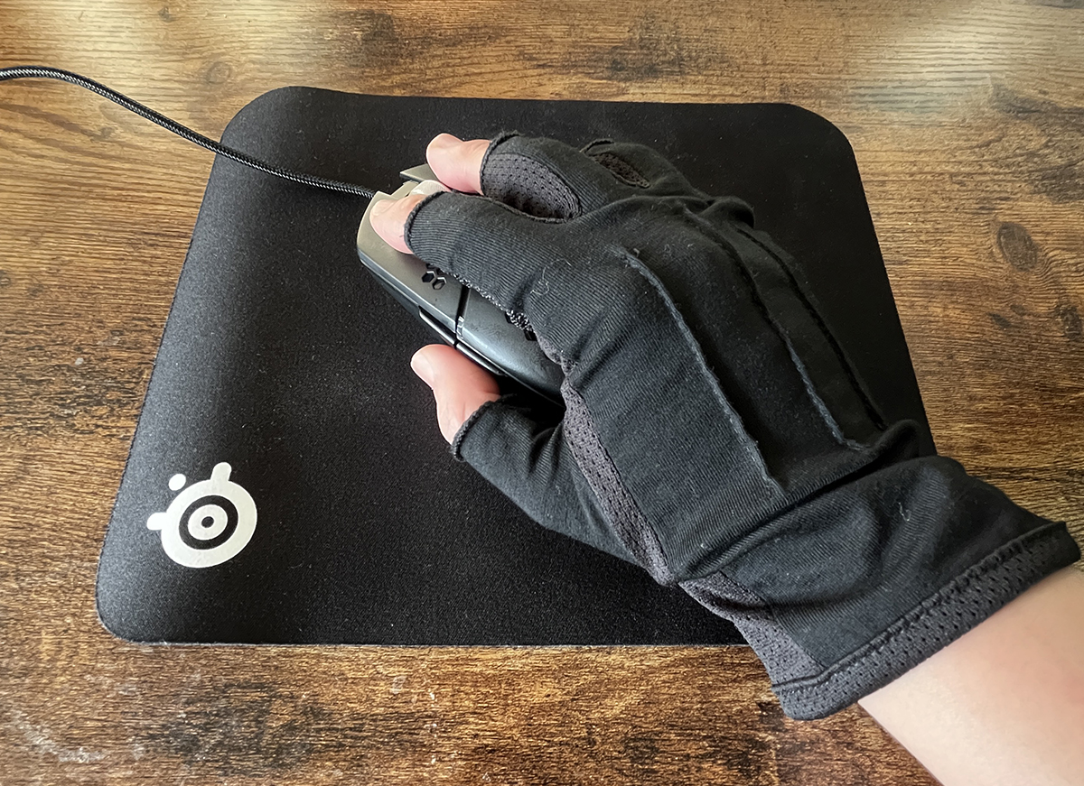 ただ、通気性が良く乾くこともあって、マウスに手汗がベッタリというまでにはなりませんでしたが、長時間使用(2、3時間〜)していると手袋が湿ってきてしまいます…