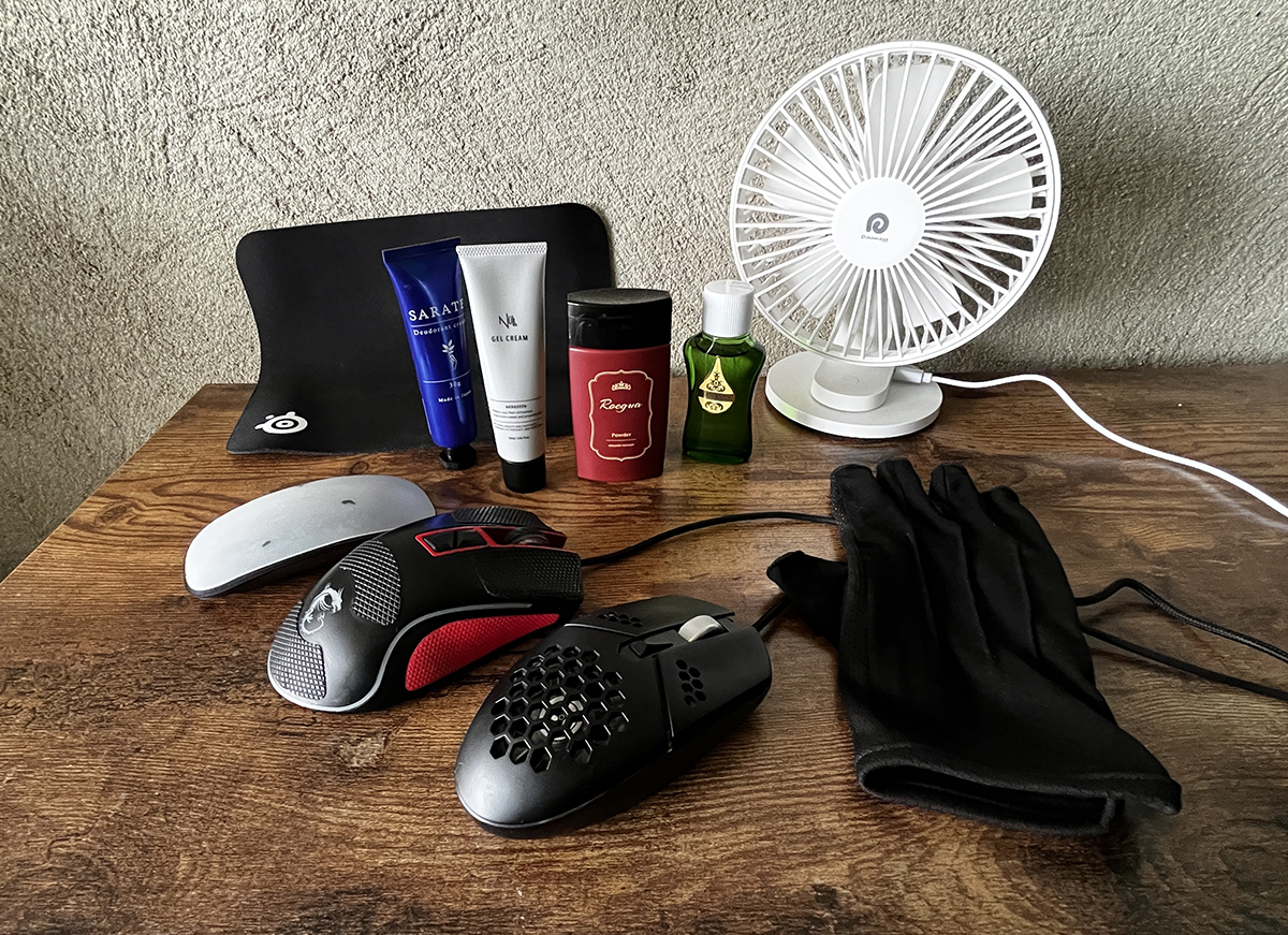 - 自宅でのマウスの手汗対策でおすすめは、「ファン付きマウス」「マウスパッド」「手袋」